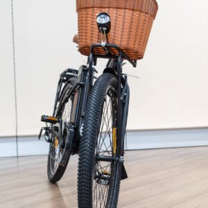 Ruota da 26, Dispaly Led, cambio shimano 7 rapporti, freni meccanici, Luce anteriore e posteriore, manubrio regolabile, porta pacchi posteriore e cestino anteriore.